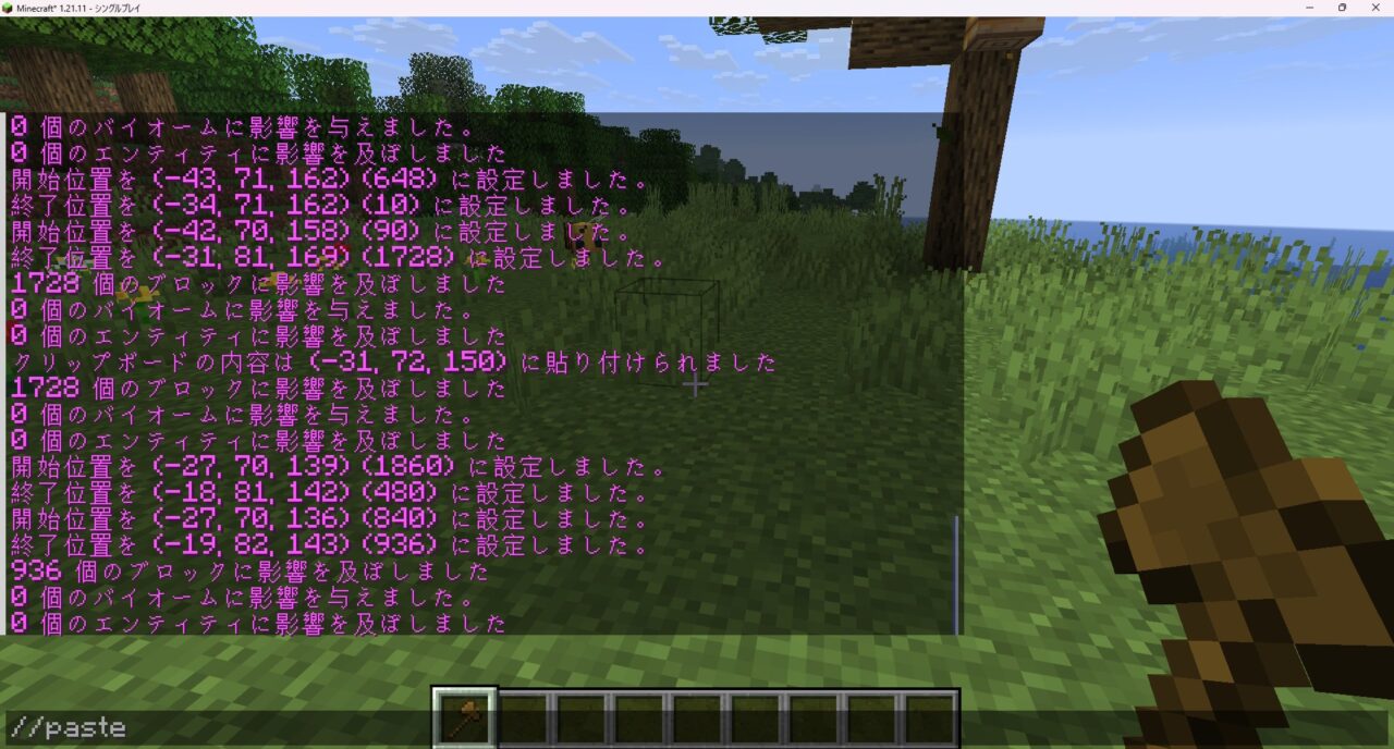//setコマンドを打つだけで、一瞬でブロックを敷き詰めたり消去したりできます。 - コピー&ペースト: 作った家を