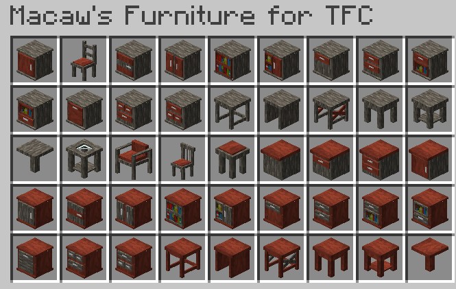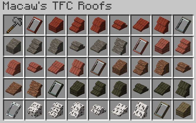 | 3:Macaw’s Mods | ・窓、屋根、橋、ドアなどの建材ブロックを大量に追加 ・バニラの雰囲気を保ちつつ和風建築や洋風建築の質を上げる | 1.18.2~1.20.1 |