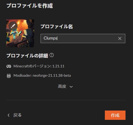 プロファイル名を入力して「作成」をクリックします。