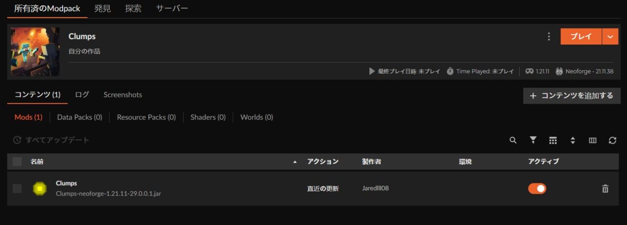 経験値MOD「Clumps」の入れ方