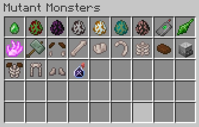 クリエイティブモードのインベントリに「Mutant Monsters」の卵が追加されていれば導入完了です。
