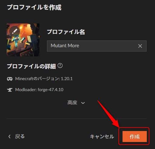 プロファイル名を入力して「作成」をクリックします。