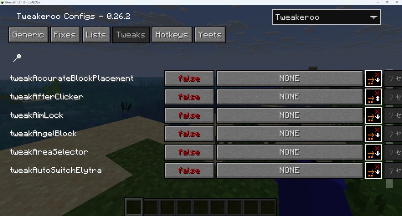 気に入った方は、「Tweakeroo」をインストールしてみましょう。