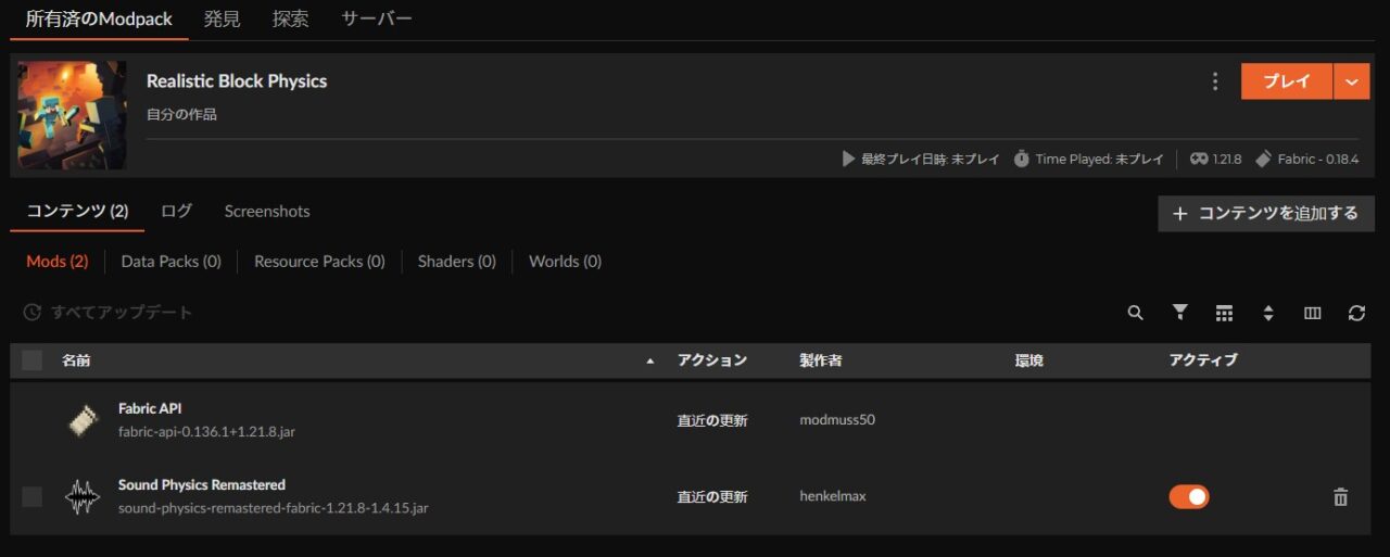 物理演算MODの入れ方として最もオーソドックスな選択肢であり、マイクラのビジュアルと体感を一度に変えたい方に間違いなくおすすめです。