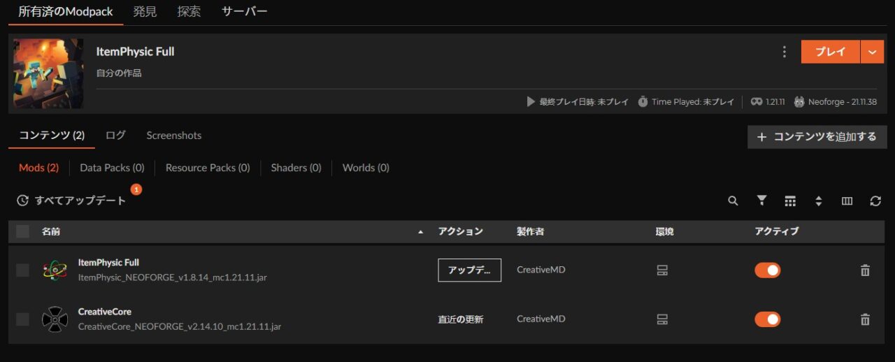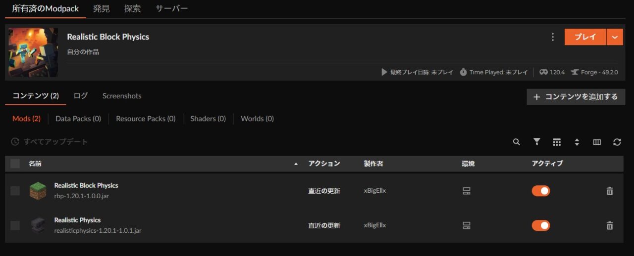 本サイトでは「CurseForge App(カースフォージアプリ)」を使用した導入方法を紹介しています。