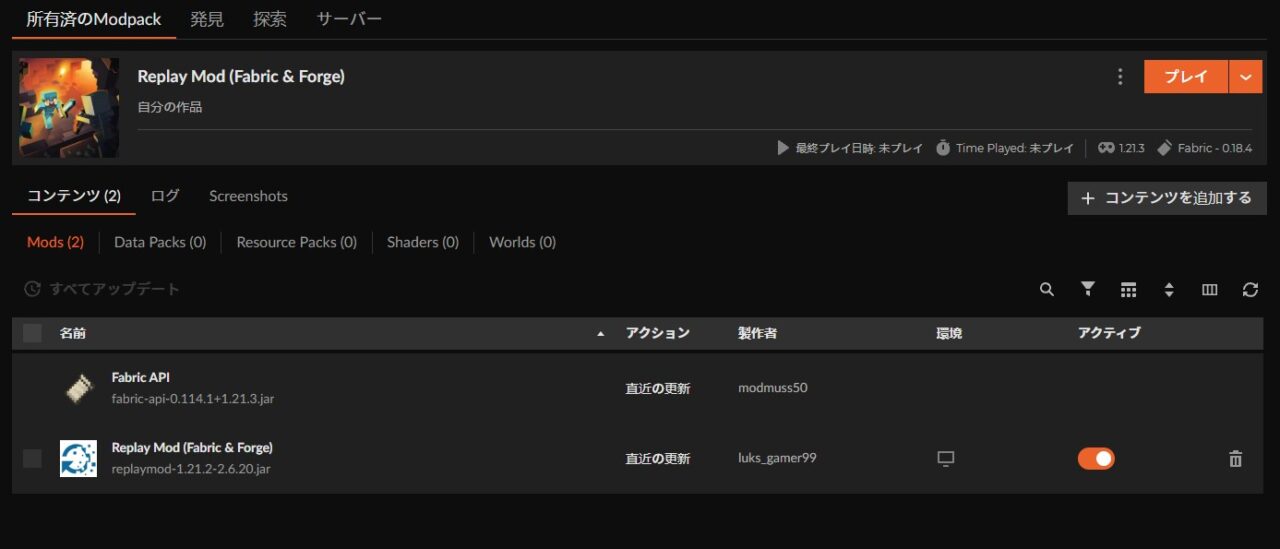 リプレイMODの使い方をマスターしたい方は、まず「Replay Mod (Fabric & Forge)」をインストールしてみましょう。