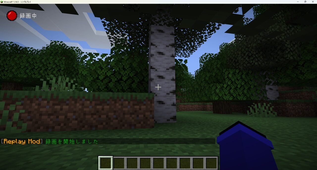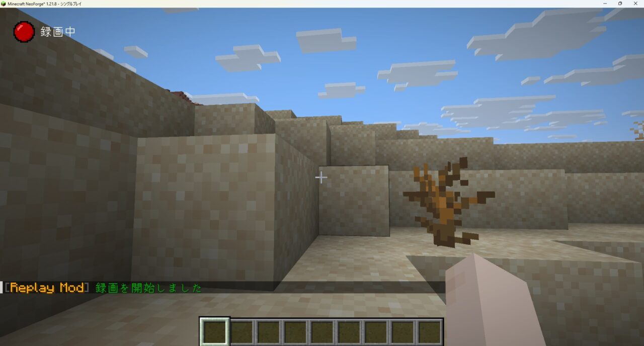 マイクラを起動し、タイトル画面にReplayのメニューが表示されるか、ゲーム内で録画インジケーターが正常に動作していれば導入完了です。