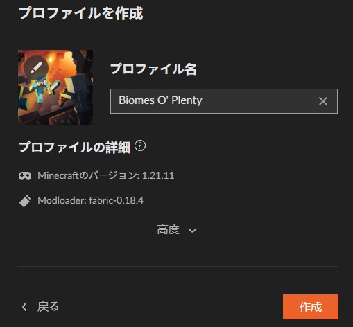 地形生成MOD「Biomes O’ Plenty」の入れ方