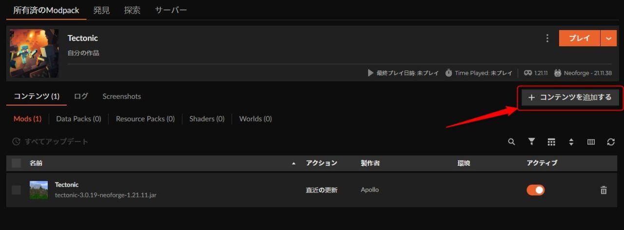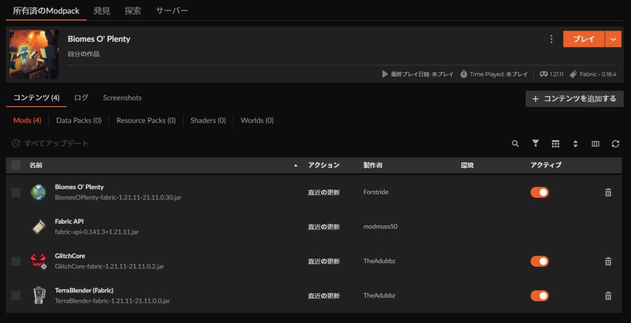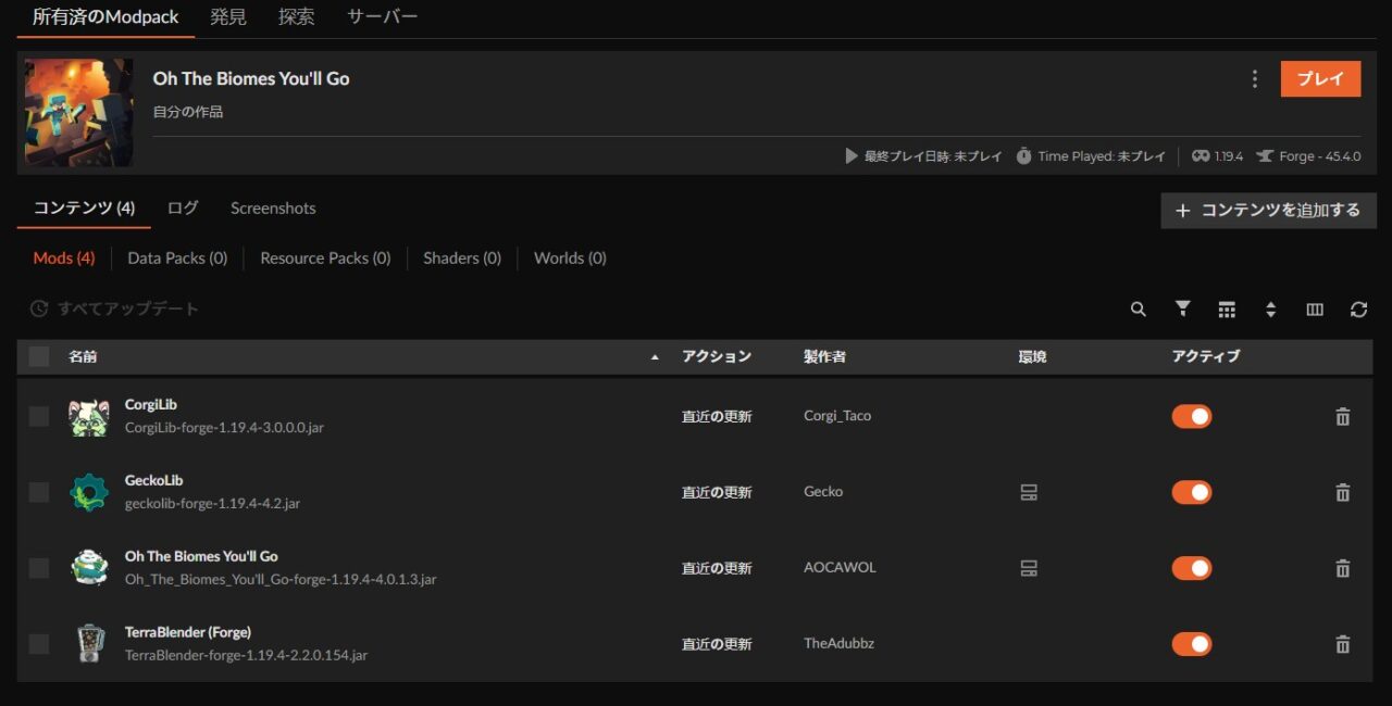 本サイトでは「CurseForge App(カースフォージアプリ)」を使用した導入方法を紹介しています。