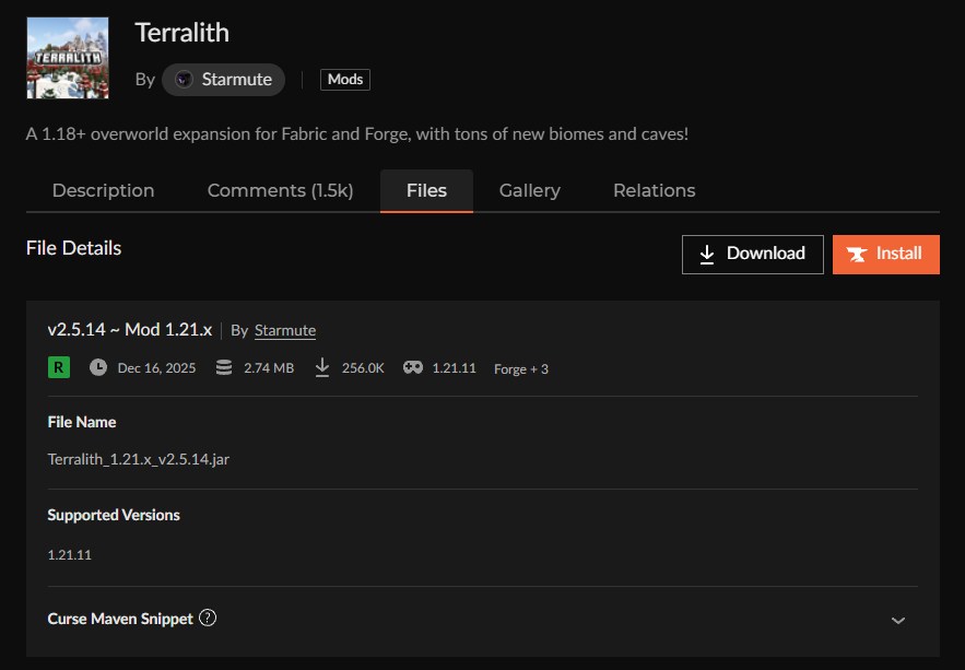 - 他のMODとの連携: 「Terralith」などのバイオーム追加MODと一緒に導入することで、さらなる高みへと地形を進化させられます。