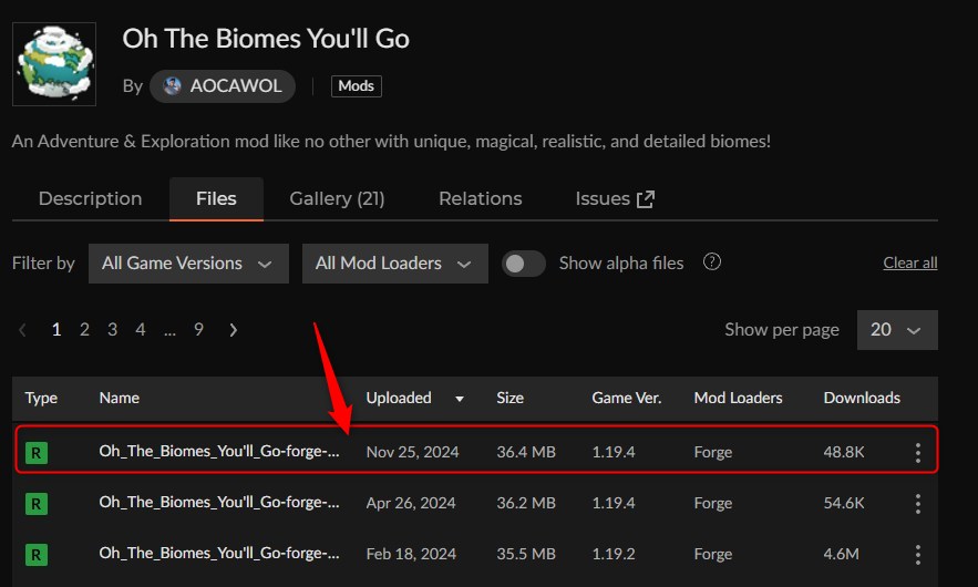 | 3:Oh The Biomes You’ll Go | ・Biomes O’ Plentyと双璧をなす超大型MODで、色鮮やかで魔法の世界のような美しい地形が大量に追加されます。 ・独特な色彩の木材や建材が豊富で、ファンタジー建築を好むプレイヤーに強く支持されています。 | 1.12.2 1.19.4 |