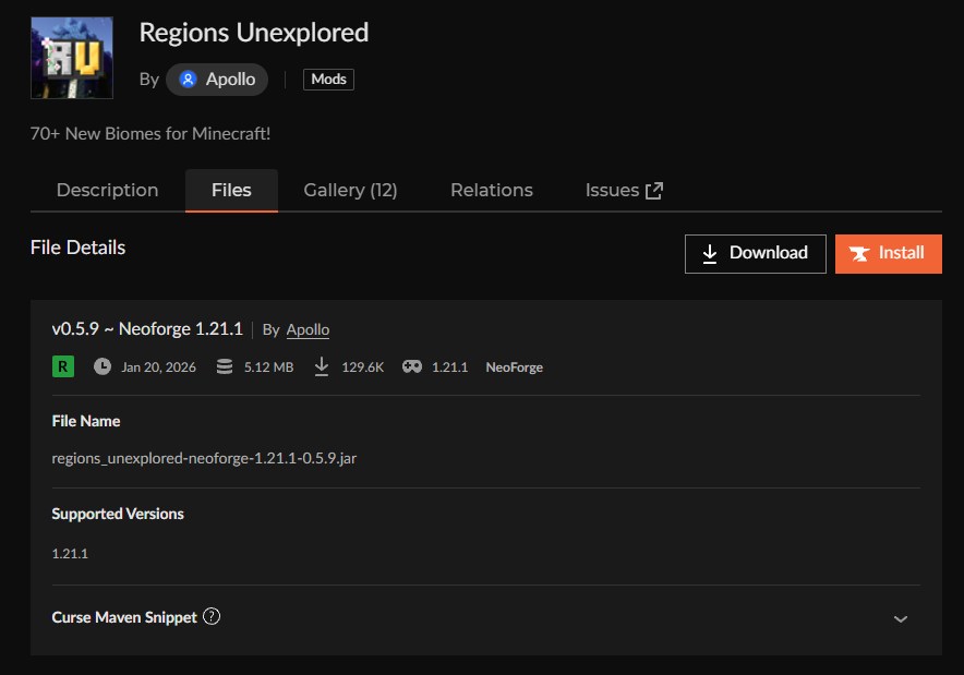 | 5:Regions Unexplored | ・より滑らかで現実的な地球の自然に近い地形や、美しく洗練されたバイオームを追加するやり込み要素が魅力です。 ・追加される木材や植物のテクスチャが非常に高品質で、散策するだけでも明確な楽しみを見出せます。 | 1.18.2 1.21.1 |