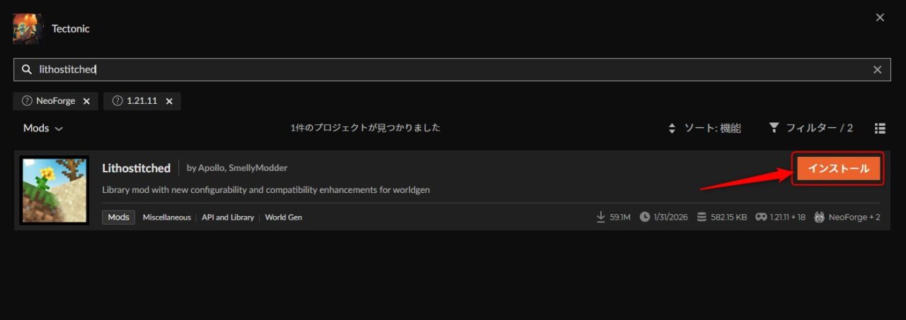 地形生成MOD「Tectonic」の入れ方を3ステップで紹介します。