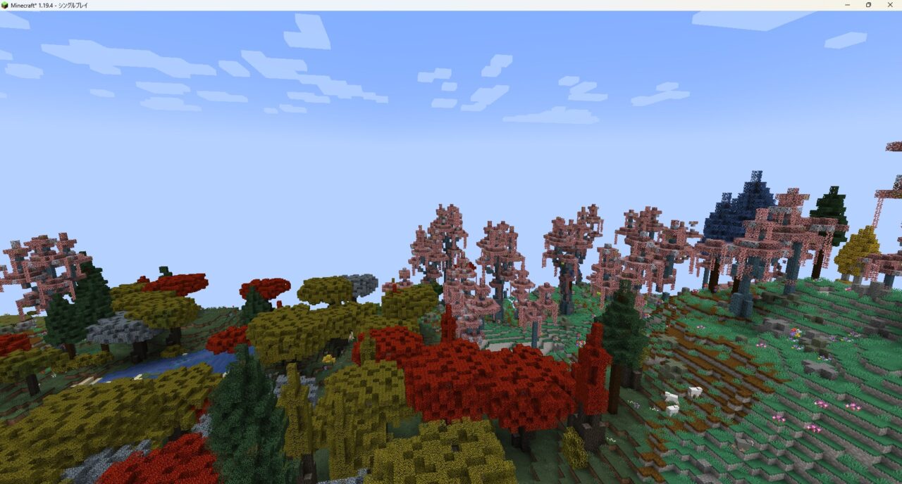 マイクラでワールドを新規作成し、新しい景色が広がっていたら導入完了です。