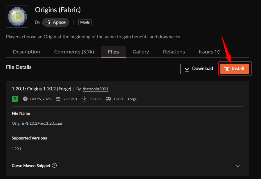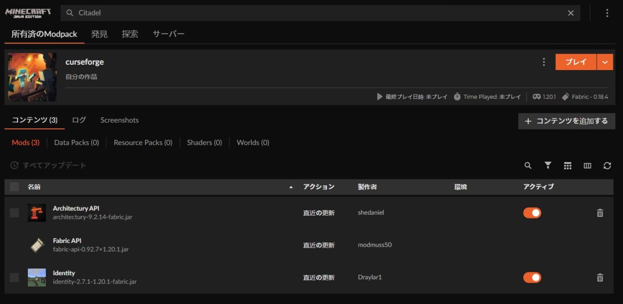 ※このMODの動作には「Fabric API」「Architectury API」が必要ですが、CurseForgeアプリなら自動で一緒にインストールされます。