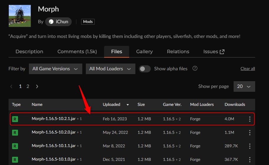 導入方法を知りたい場合は、目的の「変身MOD」をクリック、ダウンロードしたい場合は、「ダウンロード」をクリックしてください。