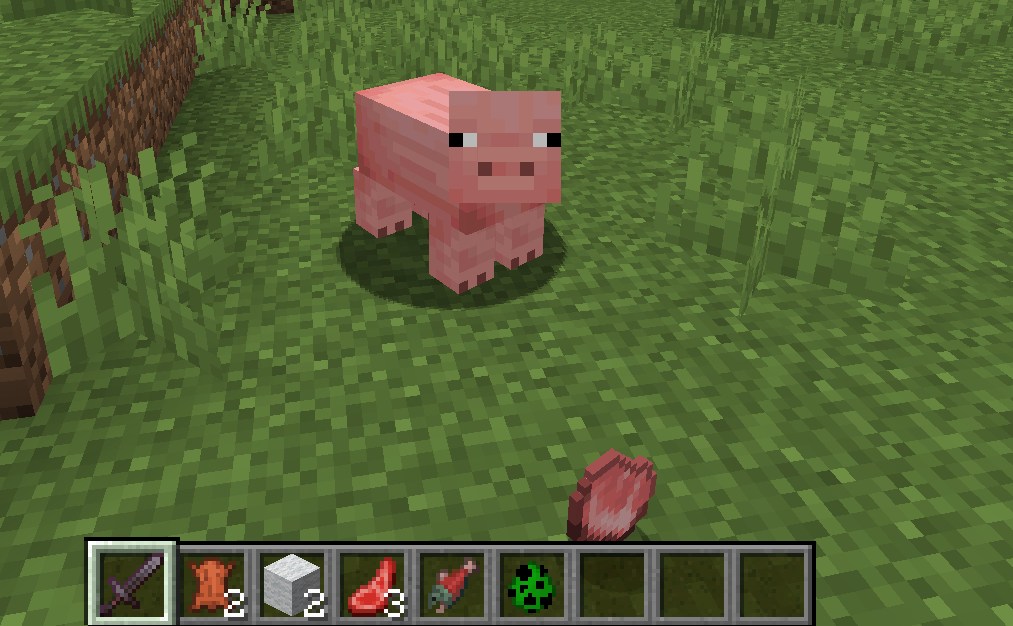 例えば、豚を倒すと黒くなり、吸収します。