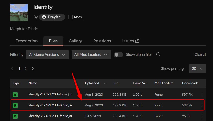 「Identity」にアクセスして、「Identity」のバージョンを選択します。(ここではバージョン1.20.1を選びます)