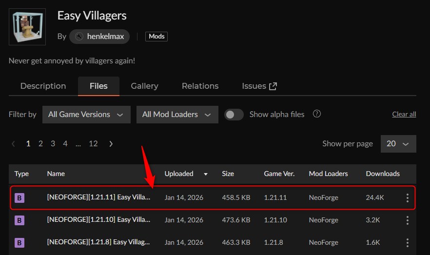 導入方法を知りたい場合は、目的の「村人MOD」をクリックしてください。