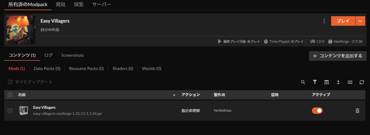 村人MOD「Easy Villagers」の入れ方を3ステップで紹介します。