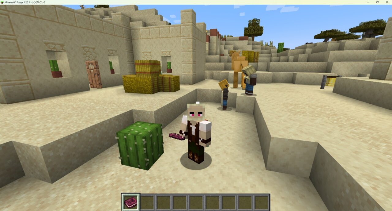 マイクラを起動し、村の中に剣やクロスボウを持った警備員の村人がスポーンしていれば導入完了です。