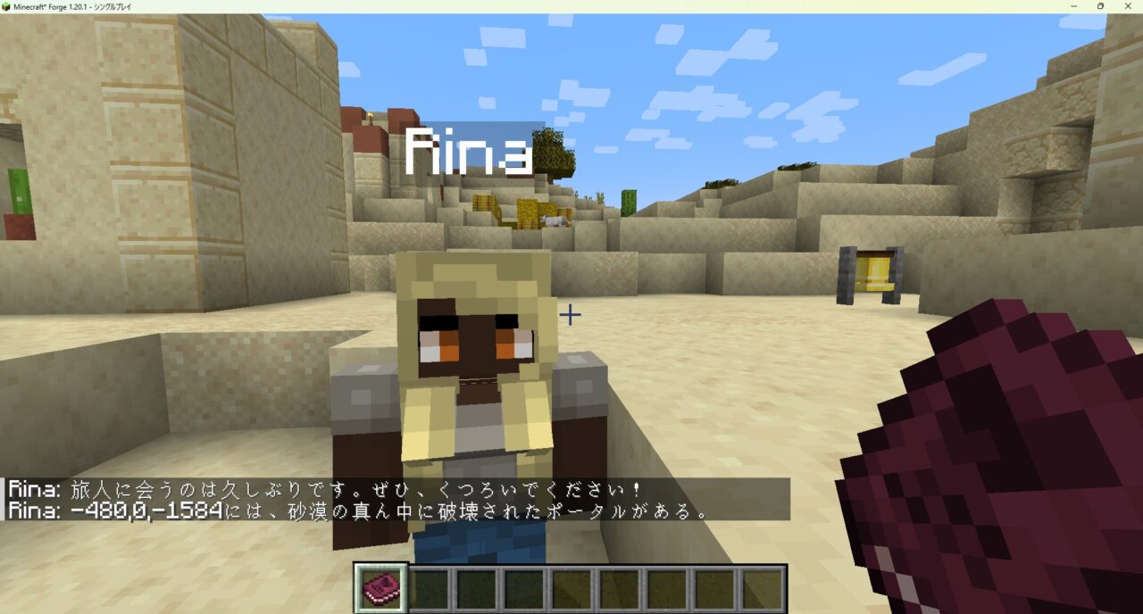 マイクラの世界に入り、村人の見た目がリアルな人間に変化し、右クリックで専用の会話メニューが開けば成功です。
