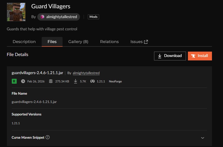 「Guard Villagers」をインストール