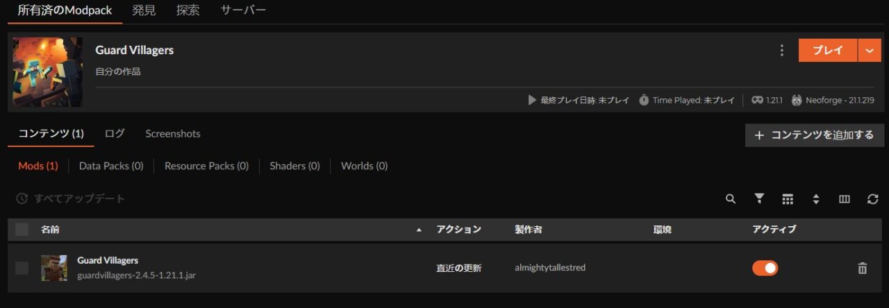 本サイトでは「CurseForge App(カースフォージアプリ)」を使用した導入方法を紹介しています。