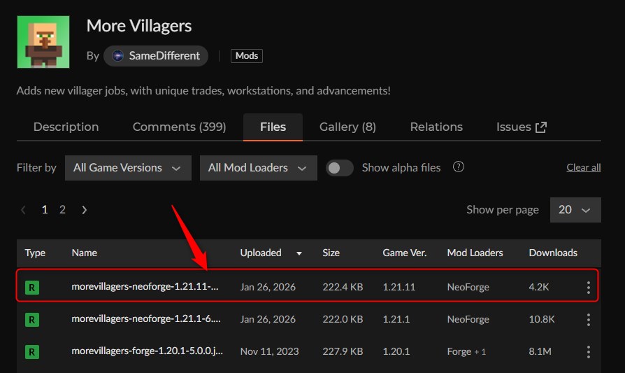 「More Villagers」をインストール