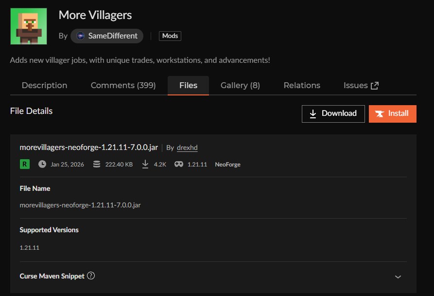 - 新しい職業を追加してバニラにない取引を楽しみたいなら「More Villagers」がおすすめ!