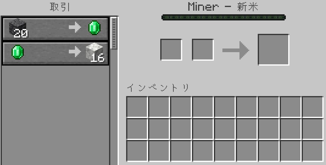 マイクラを起動し、村人と同じアイテムを何度も連続で取引し、在庫切れの「×マーク」が出なくなっていれば導入完了です。