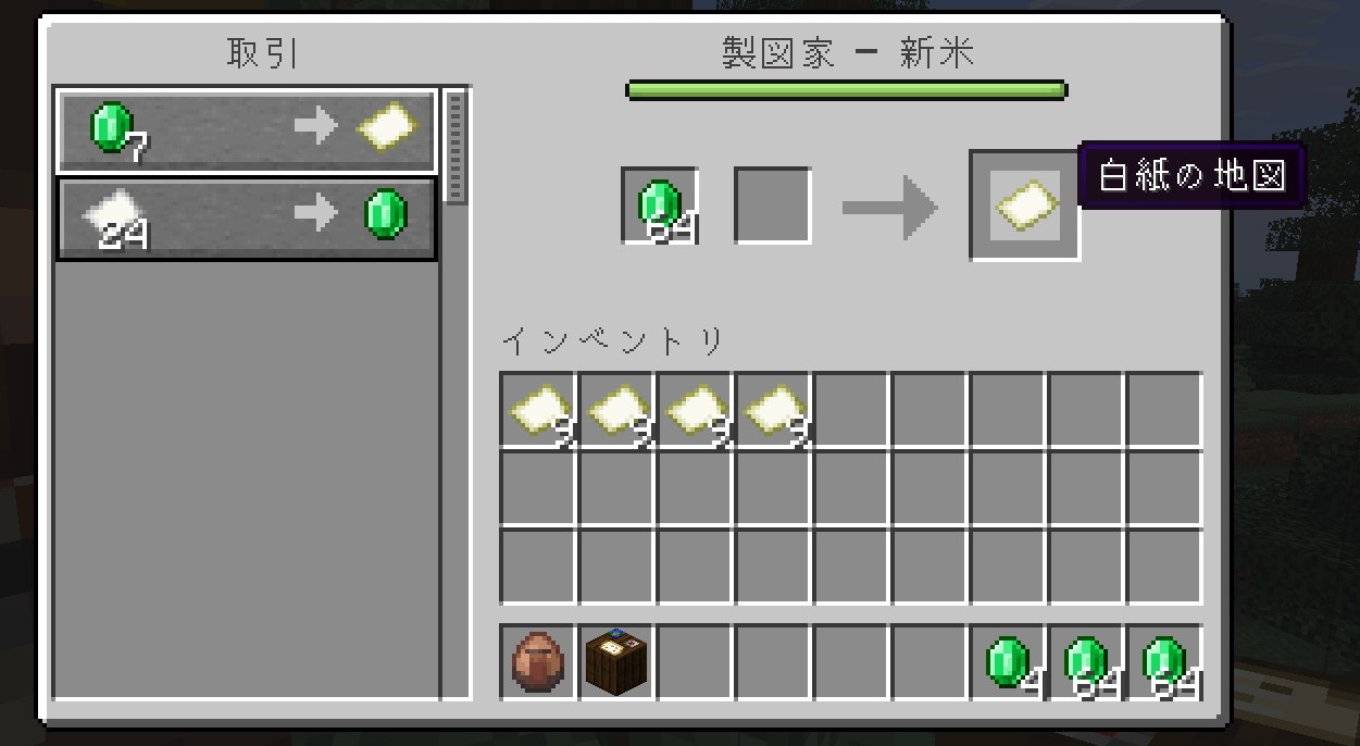 - 貴重なアイテムの取引: ネザーに行かなければ手に入らないブロックや、海底神殿のスポンジなど、通常は冒険でしか得られないアイテムを取引で集められるようになります。